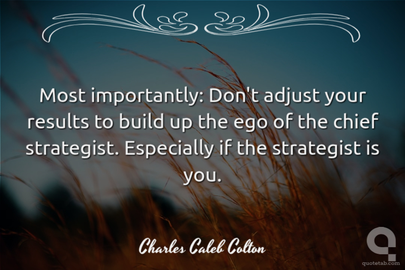 Most importantly: Don't adjust your results to build up the ego of the chief strategist. Especially if the strategist is you. Charles Caleb Colton