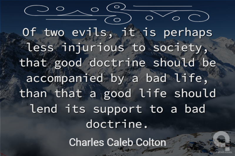 Of two evils, it is perhaps less injurious to society, that good doctrine should be accompanied by a bad life, than that a good life should lend its support to a bad doctrine. Charles Caleb Colton