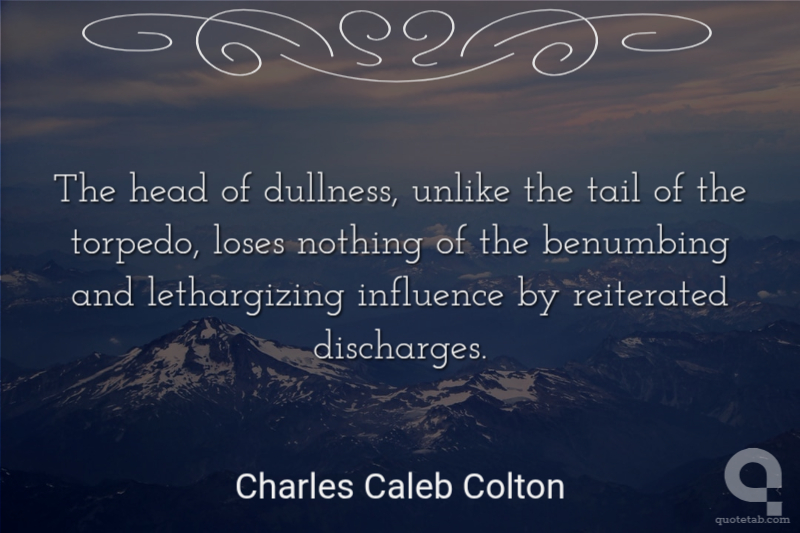 The head of dullness, unlike the tail of the torpedo, loses nothing of the benumbing and lethargizing influence by reiterated discharges. Charles Caleb Colton