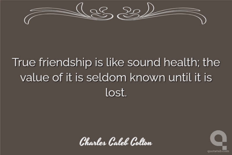 True friendship is like sound health; the value of it is seldom known until it is lost. Charles Caleb Colton