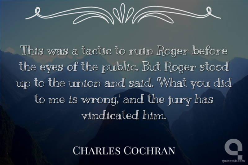 This was a tactic to ruin Roger before the eyes of the public. But Roger stood up to the union and said, 'What you did to me is wrong,' and the jury has vindicated him. Charles Cochran