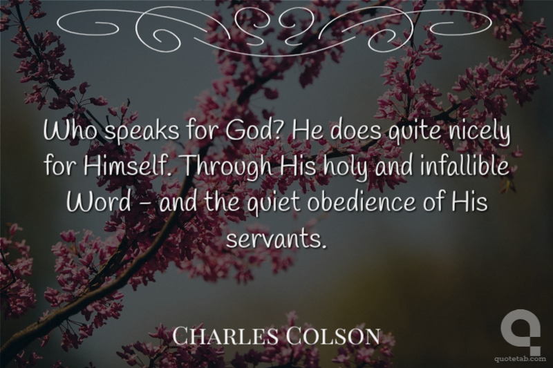 God is not silent. It is the nature of God to speak. The second person of the Holy Trinity is called "The Word." The Bible is the inevitable outcome of God's continuous speech. It is the infallible declaration of His mind. Aiden Wilson Tozer