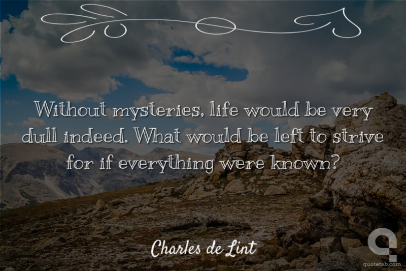 Without mysteries, life would be very dull indeed. What would be left to strive for if everything were known? Charles de Lint