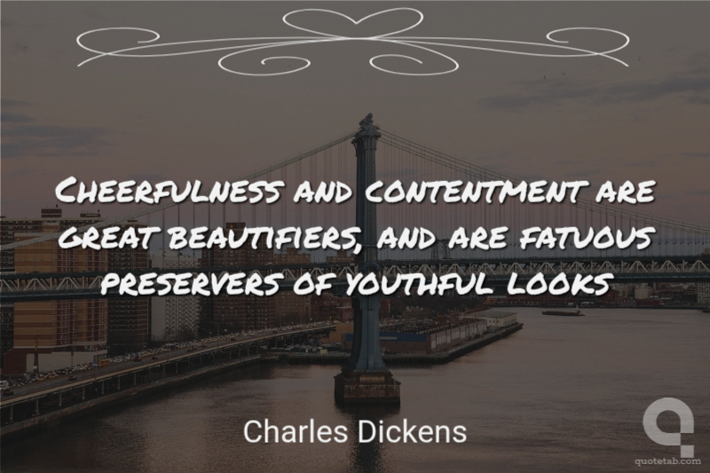 Cheerfulness and contentment are great beautifiers and are famous preservers of youthful looks. Charles Dickens