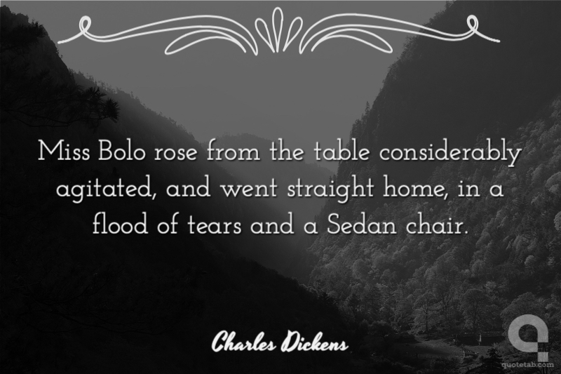 Miss Bolo rose from the table considerably agitated, and went straight home, in a flood of tears and a Sedan chair. Charles Dickens
