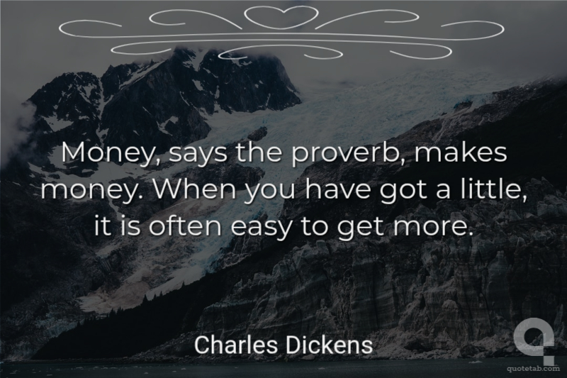 Money, says the proverb, makes money. When you have got a little, it is often easy to get more. Charles Dickens