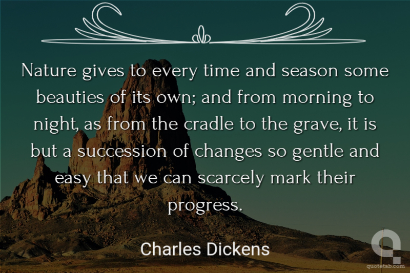 Nature gives to every time and season some beauties of its own; and from morning to night, as from the cradle to the grave, it is but a succession of changes so gentle and easy that we can scarcely mark their progress. Charles Dickens