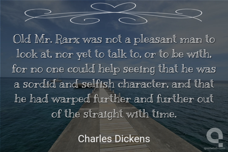 Old Mr. Rarx was not a pleasant man to look at, nor yet to talk to, or to be with, for no one could help seeing that he was a sordid and selfish character, and that he had warped further and further out of the straight with time. Charles Dickens
