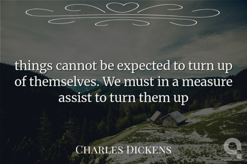 things cannot be expected to turn up of themselves. We must in a measure assist to turn them up Charles Dickens