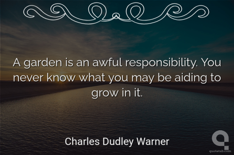 A garden is an awful responsibility. You never know what you may be aiding to grow in it. Charles Dudley Warner