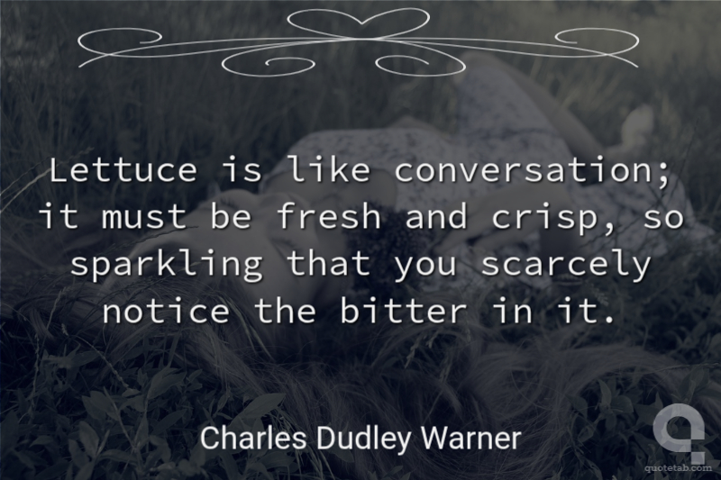 Lettuce is like conversation; it must be fresh and crisp, so sparkling that you scarcely notice the bitter in it. Charles Dudley Warner