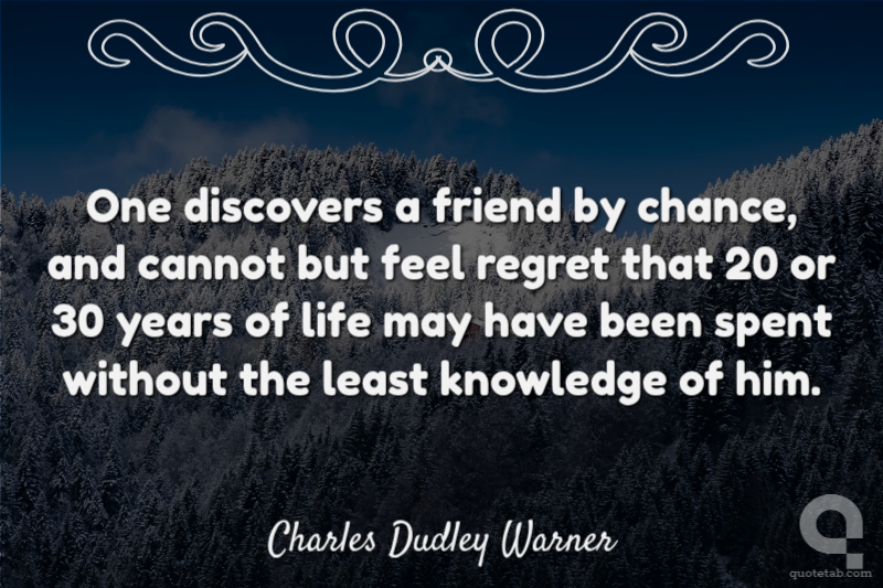 One discovers a friend by chance, and cannot but feel regret that 20 or 30 years of life may have been spent without the least knowledge of him. Charles Dudley Warner