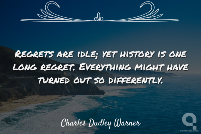 Regrets are idle; yet history is one long regret. Everything might have turned out so differently. Charles Dudley Warner