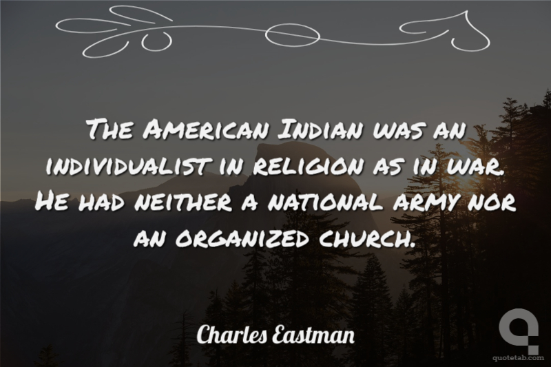 The American Indian was an individualist in religion as in war. He had neither a national army nor an organized church. Charles Eastman