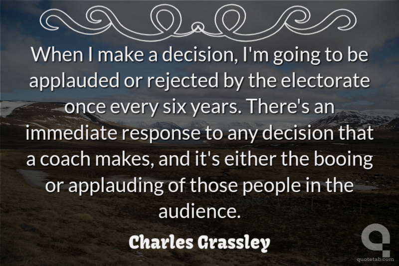 When I make a decision, I'm going to be applauded or rejected by the electorate once every six years. There's an immediate response to any decision that a coach makes, and it's either the booing or applauding of those people in the audience. Charles Grassley