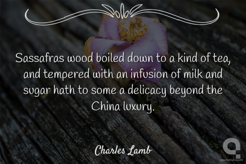 Sassafras wood boiled down to a kind of tea, and tempered with an infusion of milk and sugar hath to some a delicacy beyond the China luxury. Charles Lamb