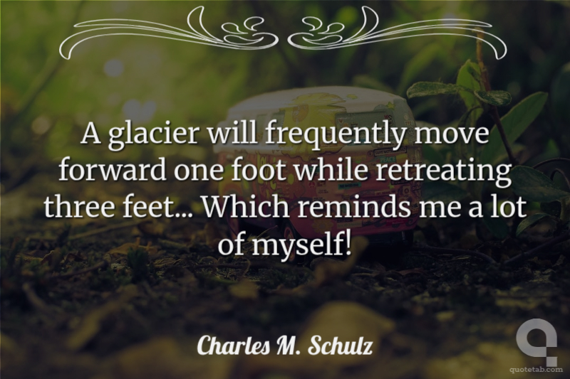 A glacier will frequently move forward one foot while retreating three feet... Which reminds me a lot of myself! Charles M. Schulz