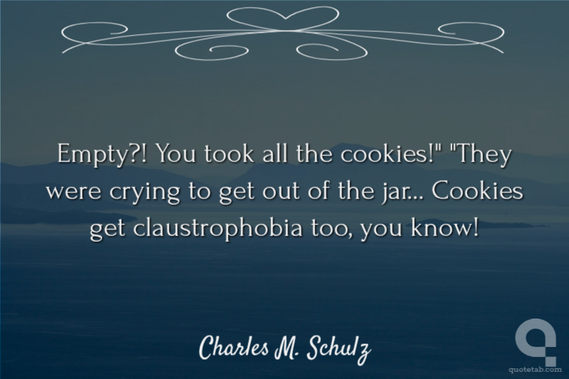 Empty?! You took all the cookies!" "They were crying to get out of the jar... Cookies get claustrophobia too, you know! Charles M. Schulz