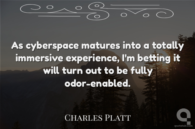 As cyberspace matures into a totally immersive experience, I'm betting it will turn out to be fully odor-enabled. Charles Platt