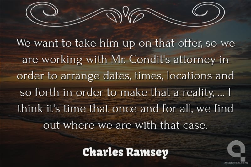 We want to take him up on that offer, so we are working with Mr. Condit's attorney in order to arrange dates, times, locations and so forth in order to make that a reality, ... I think it's time that once and for all, we find out where we are with that case. Charles Ramsey