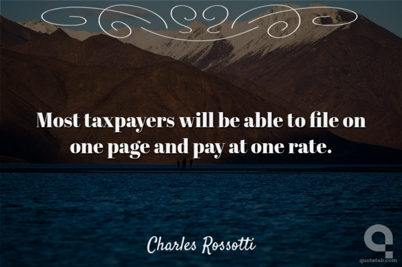 Most taxpayers will be able to file on one page and pay at one rate. Charles Rossotti
