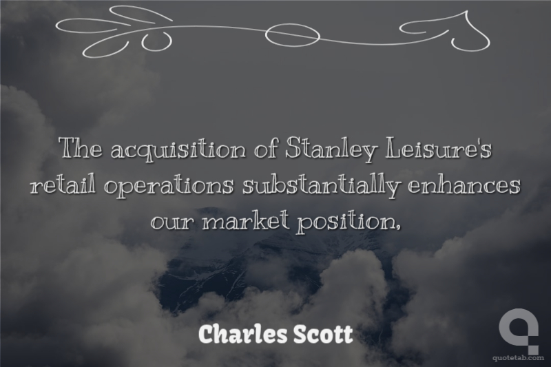 The acquisition of Stanley Leisure's retail operations substantially enhances our market position, Charles Scott