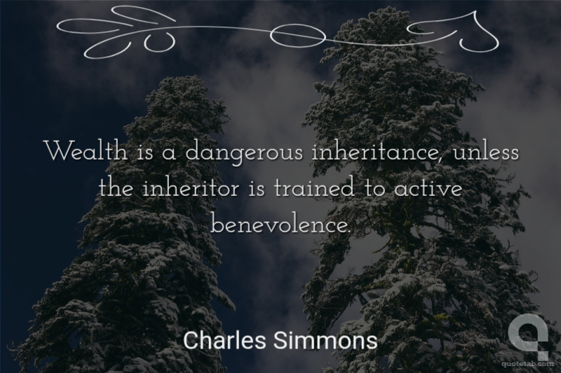 Wealth is a dangerous inheritance, unless the inheritor is trained to active benevolence. Charles Simmons