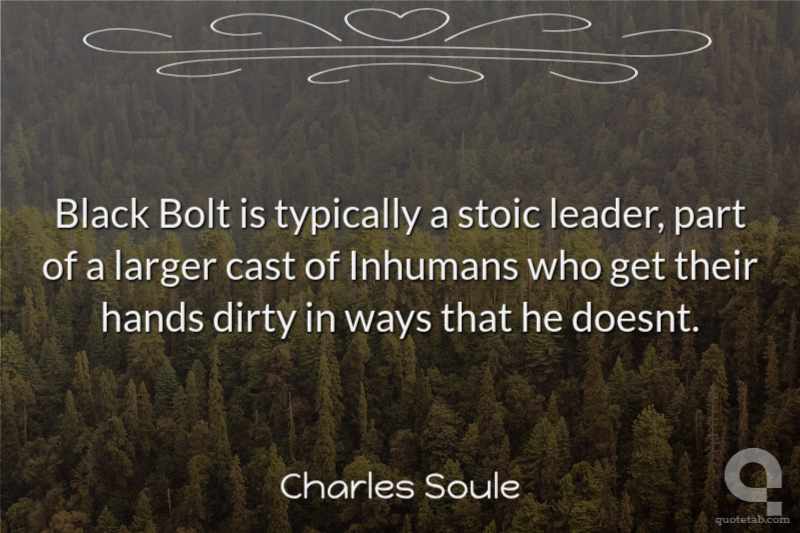 Black Bolt is typically a stoic leader, part of a larger cast of Inhumans who get their hands dirty in ways that he doesnt. Charles Soule