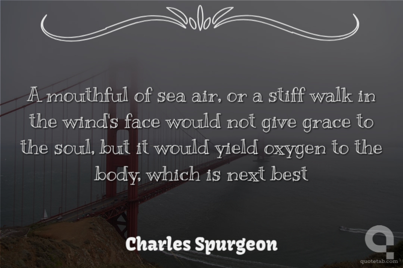 A mouthful of sea air, or a stiff walk in the wind's face would not give grace to the soul, but it would yield oxygen to the body, which is next best Charles Spurgeon