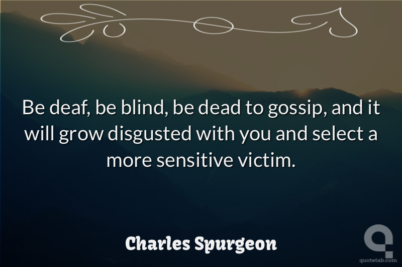 Be deaf, be blind, be dead to gossip, and it will grow disgusted with you and select a more sensitive victim. Charles Spurgeon