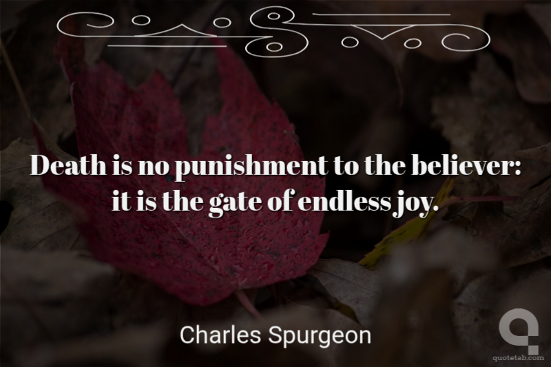 Death is no punishment to the believer: it is the gate of endless joy. Charles Spurgeon