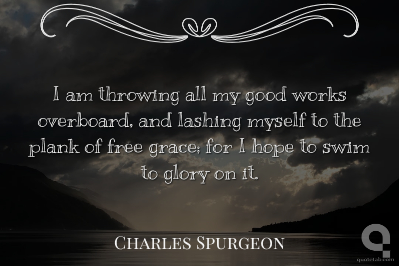 I am throwing all my good works overboard, and lashing myself to the plank of free grace; for I hope to swim to glory on it. Charles Spurgeon