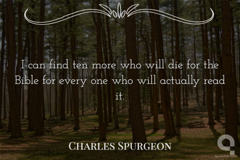 I can find ten more who will die for the Bible for every one who will actually read it. Charles Spurgeon