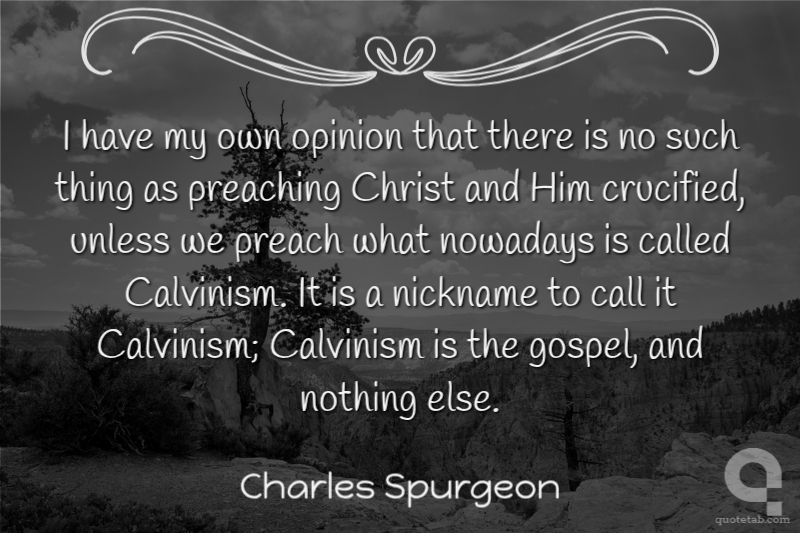 I have my own opinion that there is no such thing as preaching Christ and Him crucified, unless we preach what nowadays is called Calvinism. It is a nickname to call it Calvinism; Calvinism is the gospel, and nothing else. Charles Spurgeon