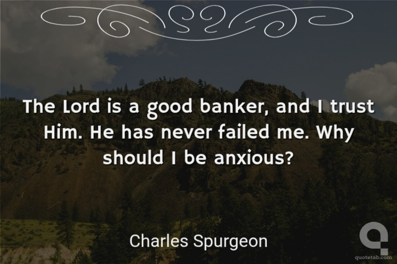 The Lord is a good banker, and I trust Him. He has never failed me. Why should I be anxious? Charles Spurgeon