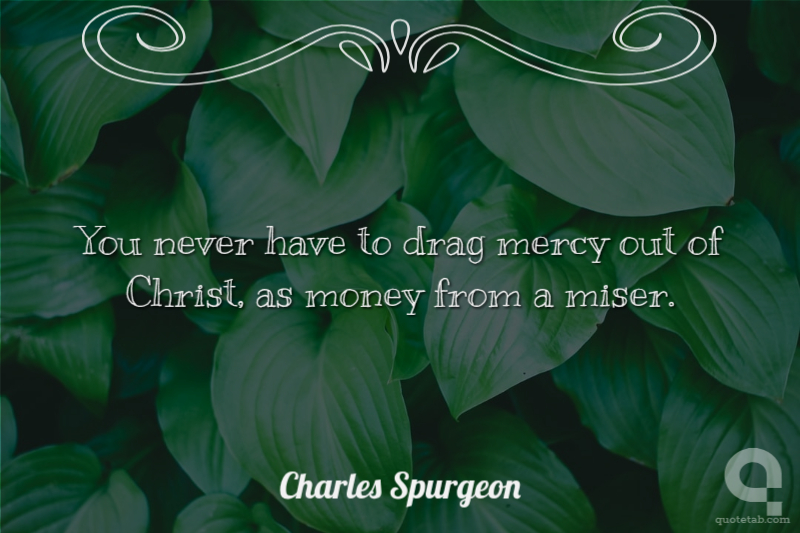 You never have to drag mercy out of Christ, as money from a miser. Charles Spurgeon