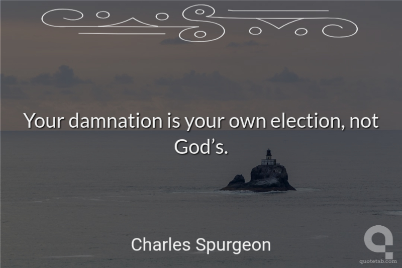 Your damnation is your own election, not God’s. Charles Spurgeon
