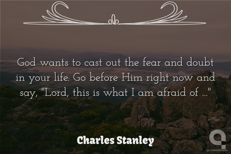 God wants to cast out the fear and doubt in your life. Go before Him right now and say, "Lord, this is what I am afraid of ..." Charles Stanley