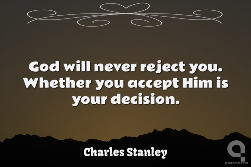God will never reject you. Whether you accept Him is your decision. Charles Stanley