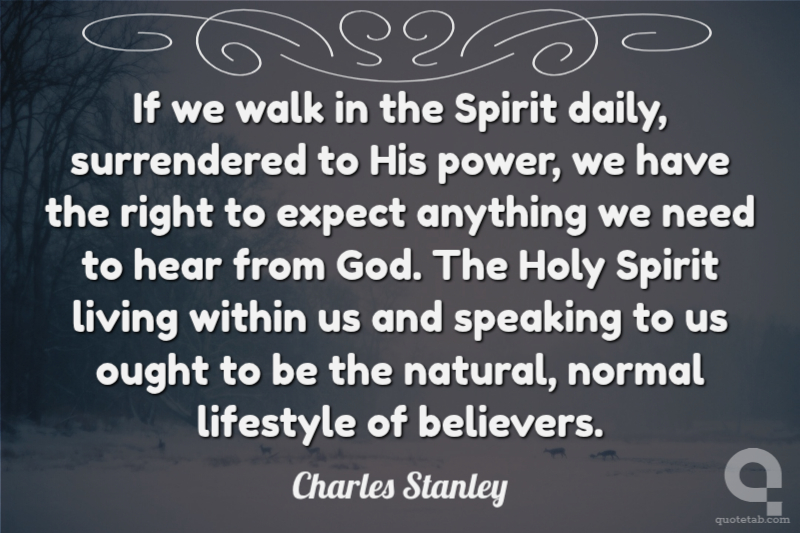 If we walk in the Spirit daily, surrendered to His power, we have the right to expect anything we need to hear from God. The Holy Spirit living within us and speaking to us ought to be the natural, normal lifestyle of believers. Charles Stanley