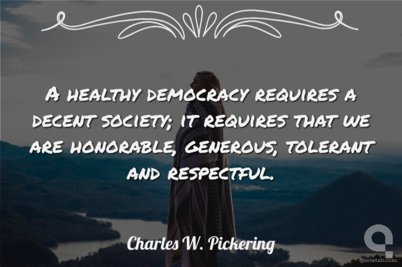 A healthy democracy requires a decent society; it requires that we are honorable, generous, tolerant and respectful. Charles W. Pickering