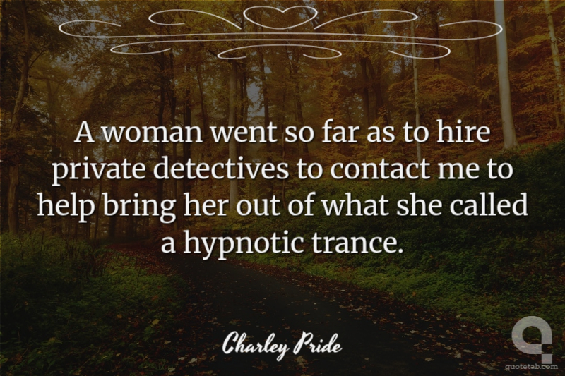A woman went so far as to hire private detectives to contact me to help bring her out of what she called a hypnotic trance. Charley Pride