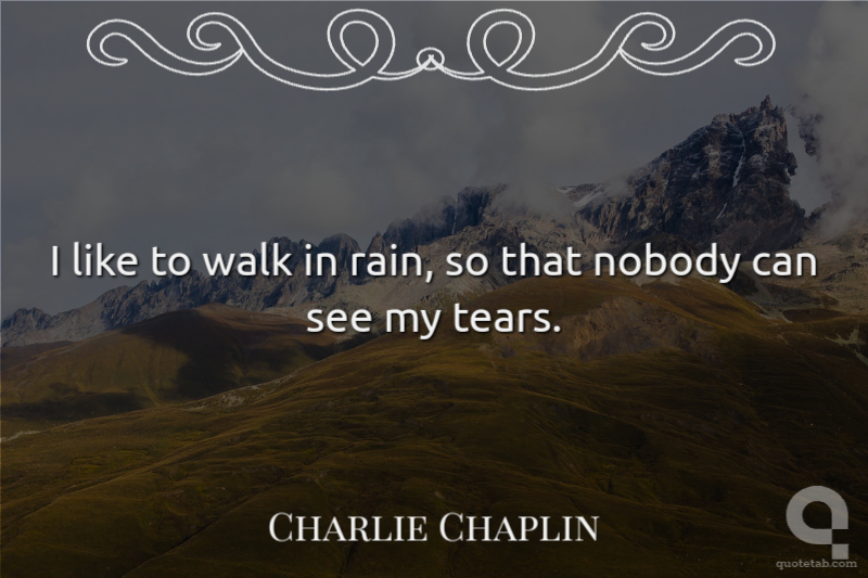 I like to walk in rain, so that nobody can see my tears. Charlie Chaplin