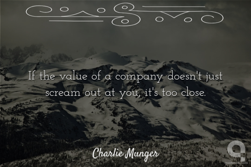 If the value of a company doesn't just scream out at you, it's too close. Charlie Munger