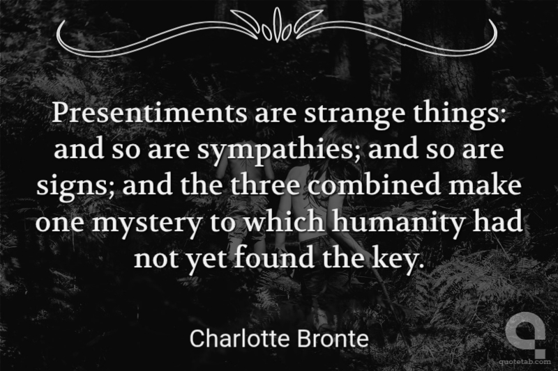 Presentiments are strange things: and so are sympathies; and so are signs; and the three combined make one mystery to which humanity had not yet found the key. Charlotte Bronte