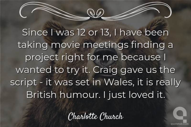 Since I was 12 or 13, I have been taking movie meetings finding a project right for me because I wanted to try it. Craig gave us the script - it was set in Wales, it is really British humour. I just loved it. Charlotte Church