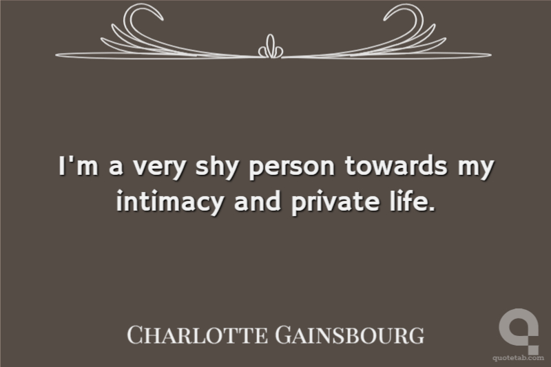 I'm a very shy person towards my intimacy and private life. Charlotte Gainsbourg