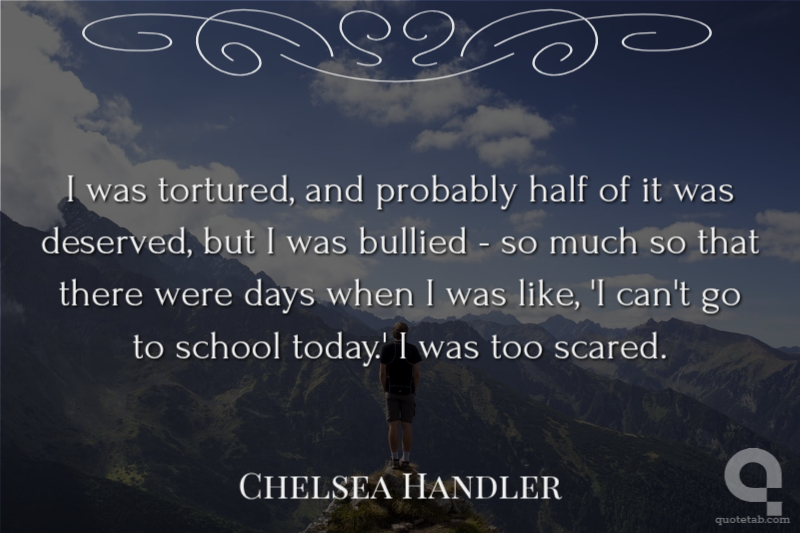 I was tortured, and probably half of it was deserved, but I was bullied - so much so that there were days when I was like, 'I can't go to school today.' I was too scared. Chelsea Handler