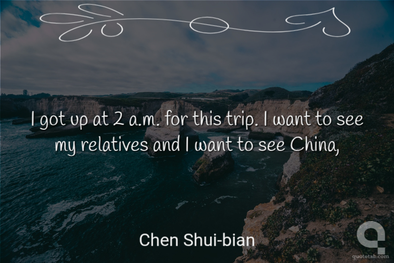 I got up at 2 a.m. for this trip. I want to see my relatives and I want to see China, Chen Shui-bian