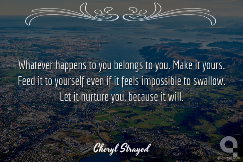 Whatever happens to you belongs to you. Make it yours. Feed it to yourself even if it feels impossible to swallow. Let it nurture you, because it will. Cheryl Strayed